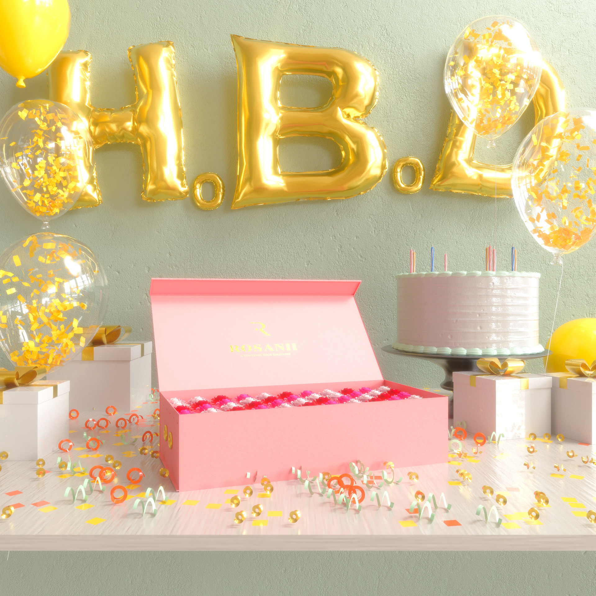 of Rosanii Flowers boxes on One year anniversary celebration.