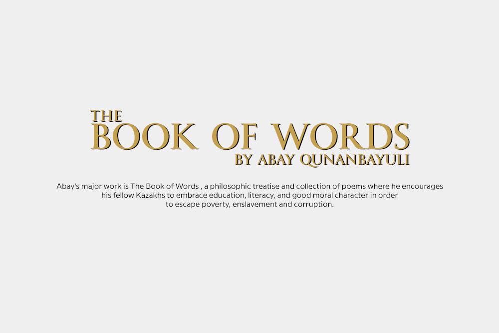 the book of words (Book Cover) Abay's major work is The Book of Words , a philosophic treatise and collection of poems where he encourages his fellow Kazakhs to embrace education, literacy, and good moral character in orderto escape poverty, enslavement and corruption.